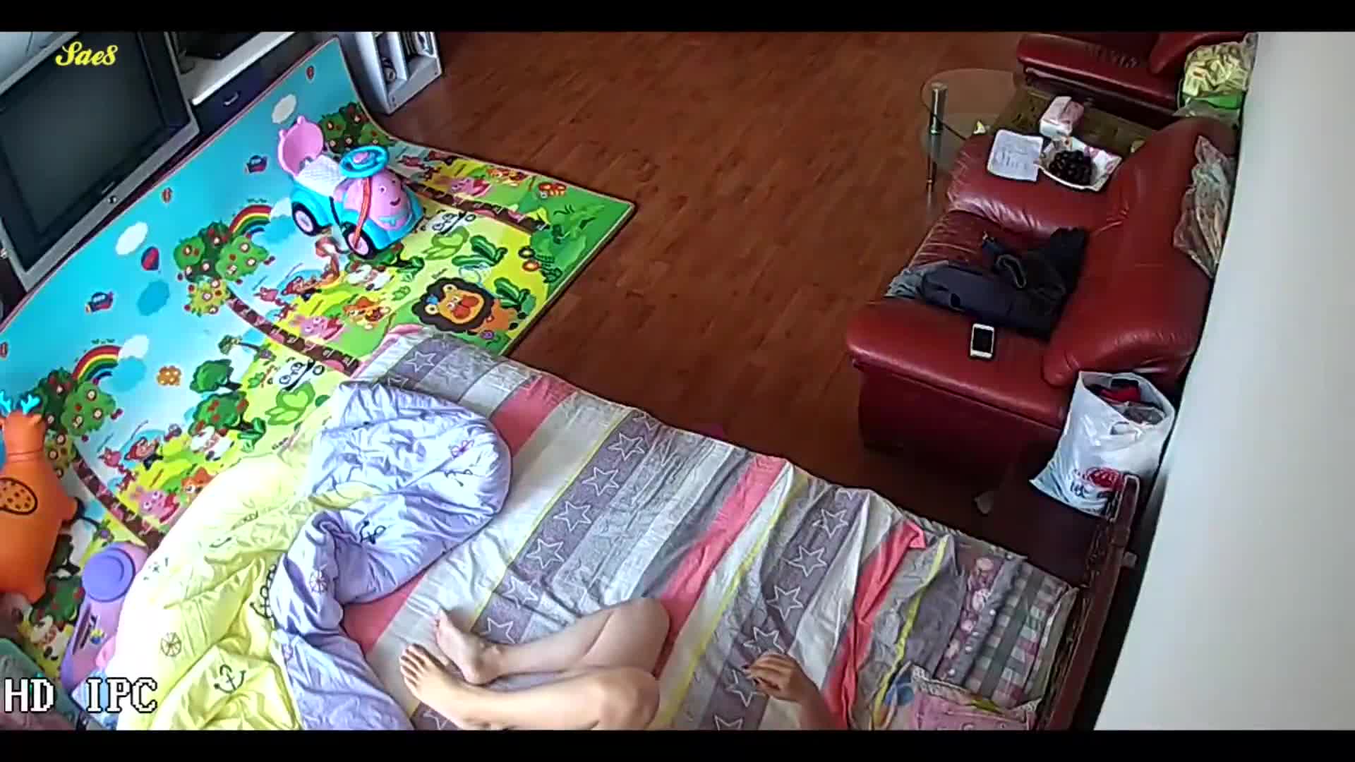 摄像头拍摄熊孩子不在家夫妻大白天放飞自我啪啪啪。